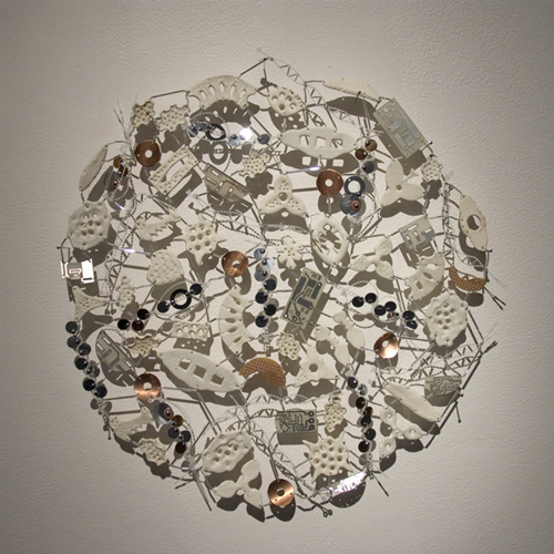 paper clay, wire, plastic, metal beads; 400mm x 400mm x 10mm; Faking It- a Re-Visitation of Postmoderism; Hawke’s Bay Exhibition Centre; 2008
