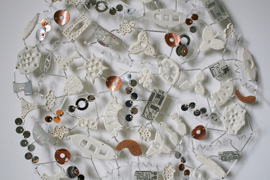 paper clay, wire, plastic, metal beads; 400mm x 400mm x 10mm; Faking It- a Re-Visitation of Postmodernism; Hawke’s Bay Exhibition Centre; 2008